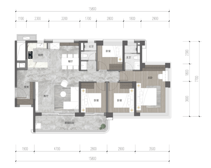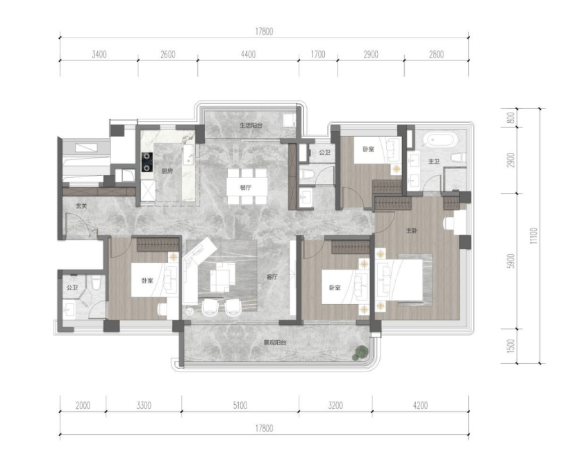 116平方米户型,延续了高利用率的劣势,双阳台设置装备摆设,兼顾功能适用性取栖身舒服度。客堂毗连景不雅阳台,视野宽阔,是家庭勾当的核心。餐厅毗连糊口阳台,便利晾晒和储物。从卧套房设想,带卫生间和衣帽间,私密性强,舒服度高。两个次卧面积适中,采光优良,适合白叟或孩子栖身。对于多生齿家庭来说,116平方米户型可以或许很好地满脚栖身需求,让每个家庭都有本人的空间。